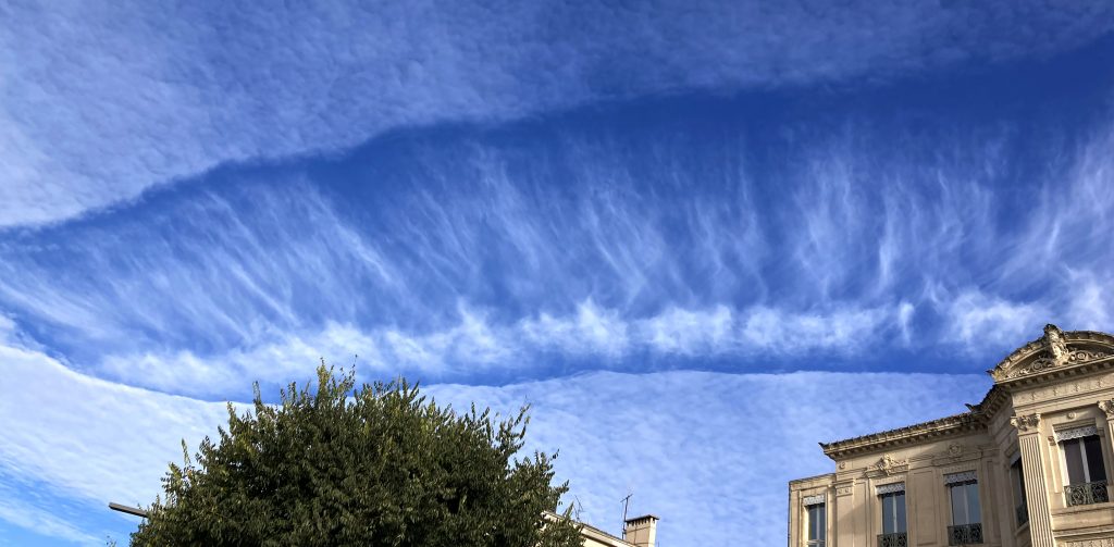 Zum Abschluss dieser ersten Weinreise von Beaune über Tain l’Hermitage bis nach Avignon waren auch angesichts der relativ großen Gruppe von 19 Personen, inklusive der Reiseleitung, alle Tage auf den Weingütern und den sonstigen Restaurantbesuchen recht entspannt und kulinarisch sowieso ausgezeichnet. Hier noch ein Wolkenbild, welches in der Region Châteauneuf du Pape entstanden ist.