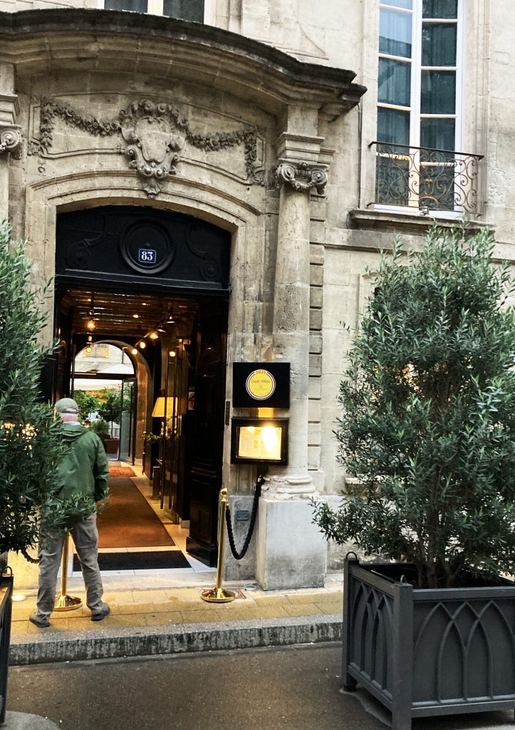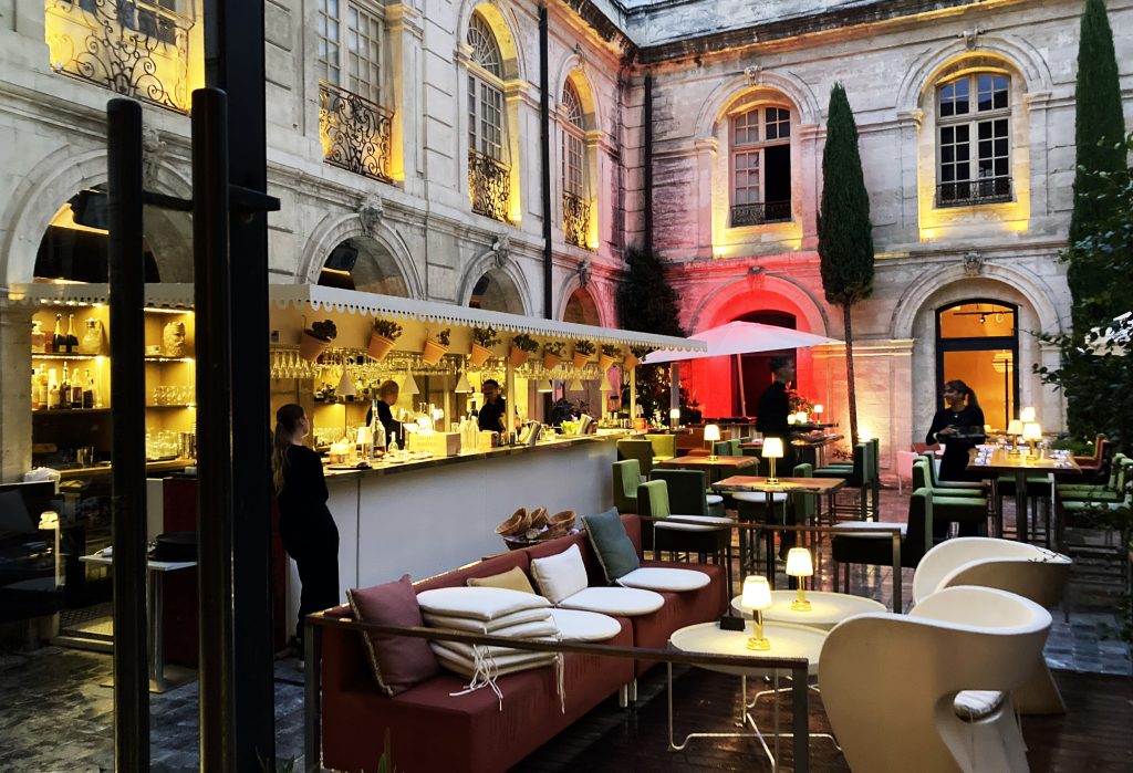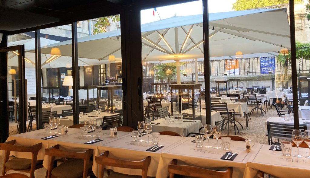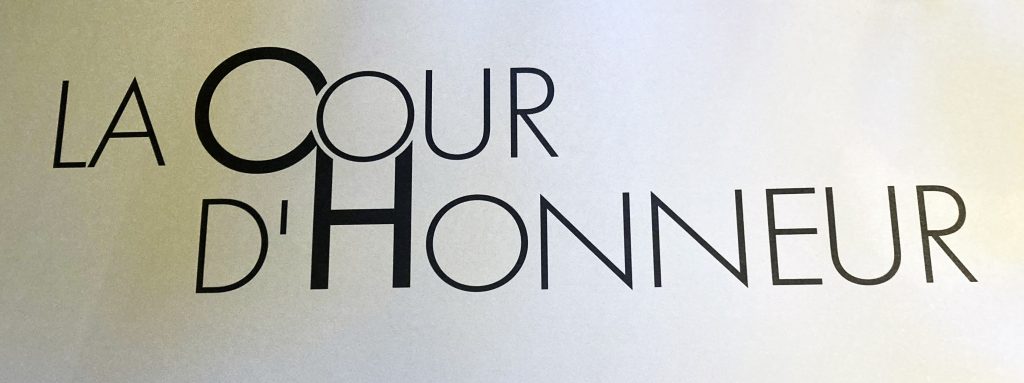 Das La cour d’Honneur (könnte man übersetzen mit „der Ehrenhof“) befand sich auch in einem älteren Gebäude, wo der Innenhof ebenso fast voll bestuhlt war, wo sich dann auch später einige Gäste einfanden. Das Essen an diesem Abend ganz ok und auch die Weinkarte wo man etwas finden konnte.