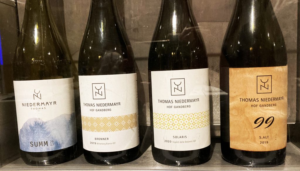 Neben den Verkostungen an den einzelnen Tischen gab es dann auch noch einige Masterclasses, welche in einem quasi Nebenraum stattfand und über so ca. 1 Std. dauerte. Ich wurde kurzfristig zu einer Masterclass über Piwi Weine des Weingutes Niedermayr eingeladen bzw. hingelotst und kam so zu einer sicher sehr interessanten Einführung und umfangreichen Erklärungen zu Piwi Weinen dieses Weingutes. Nur kurz zur Erklärung: Piwi Weine sich solche Rebsorten die im Prinzip pilzresistent sind, meist Neuzüchtungen aus den letzten 2-3 Jahrzehnten und inzwischen immer mehr in Europa, aber auch in Übersee angebaut werden. Darunter fallen solche Rebsorten wie: Solaris, Brommer, Sauvignier Gris, Muscaris und diverse weitere die sich erst einmal einen Namen in der Weinwelt verschaffen müssen. Wir verkosteten 4 unterschiedliche Flaschen vom Weingut Niedermayr der weißen Sprten wie folgt: