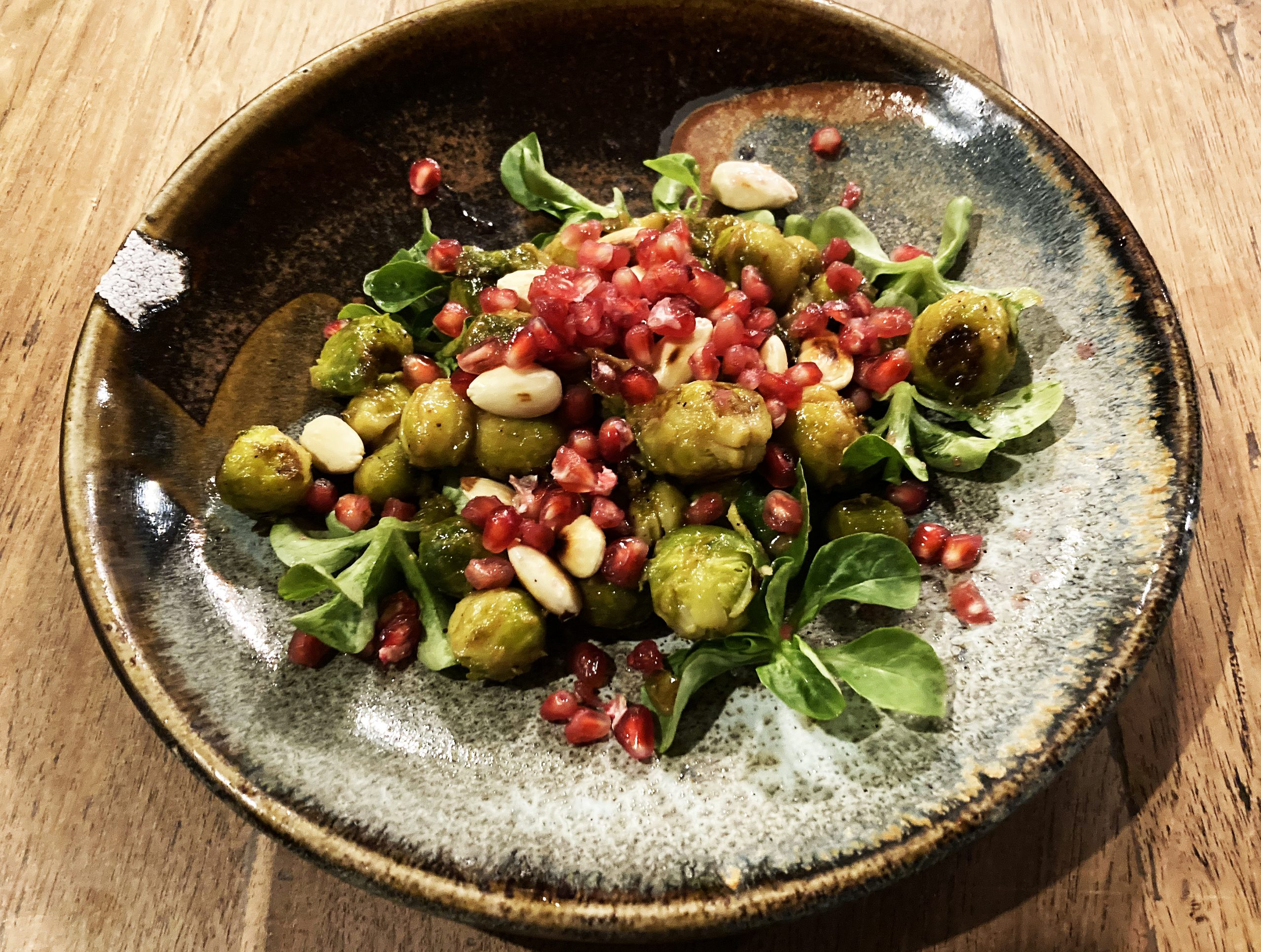 An den Feiertagen um Weihnachten in diesem Jahr war ich einmal wieder zu einem meiner Brüder nach Rottweil in Baden-Württemberg gefahren. Da wir beide Koch Enthusiasten sind gibt es im Vorfeld eine kleine Essensplanung, welche aber insgesamt so auf die diversen Feiertage abgestimmt sind. Zum 24. 12. sollte es Coq au Vin geben, dann am 1. Feiertag eine Entenbrust mit Rotkohl und an einem der anderen Tage hatten die Gastgeber einen Salat von Rosenkohl, natürlich aus dem eigenen Garten vorbereitet der sich mit folgenden Zutaten ergänzte. Granatapfelkerne, Champignons, Feldsalat und Mandeln die dann nach dem Garen des Rosenkohls zu einem feinen Salatteller ergänzt wurden. Insgesamt auch noch mit etwas Vinaigrette abgestimmt, sowie natürlich mit etwas Salz und Pfeffer verfeinert kam dieser Salat dann auf die selber gedreht und gebrannten Teller auf den Tisch.